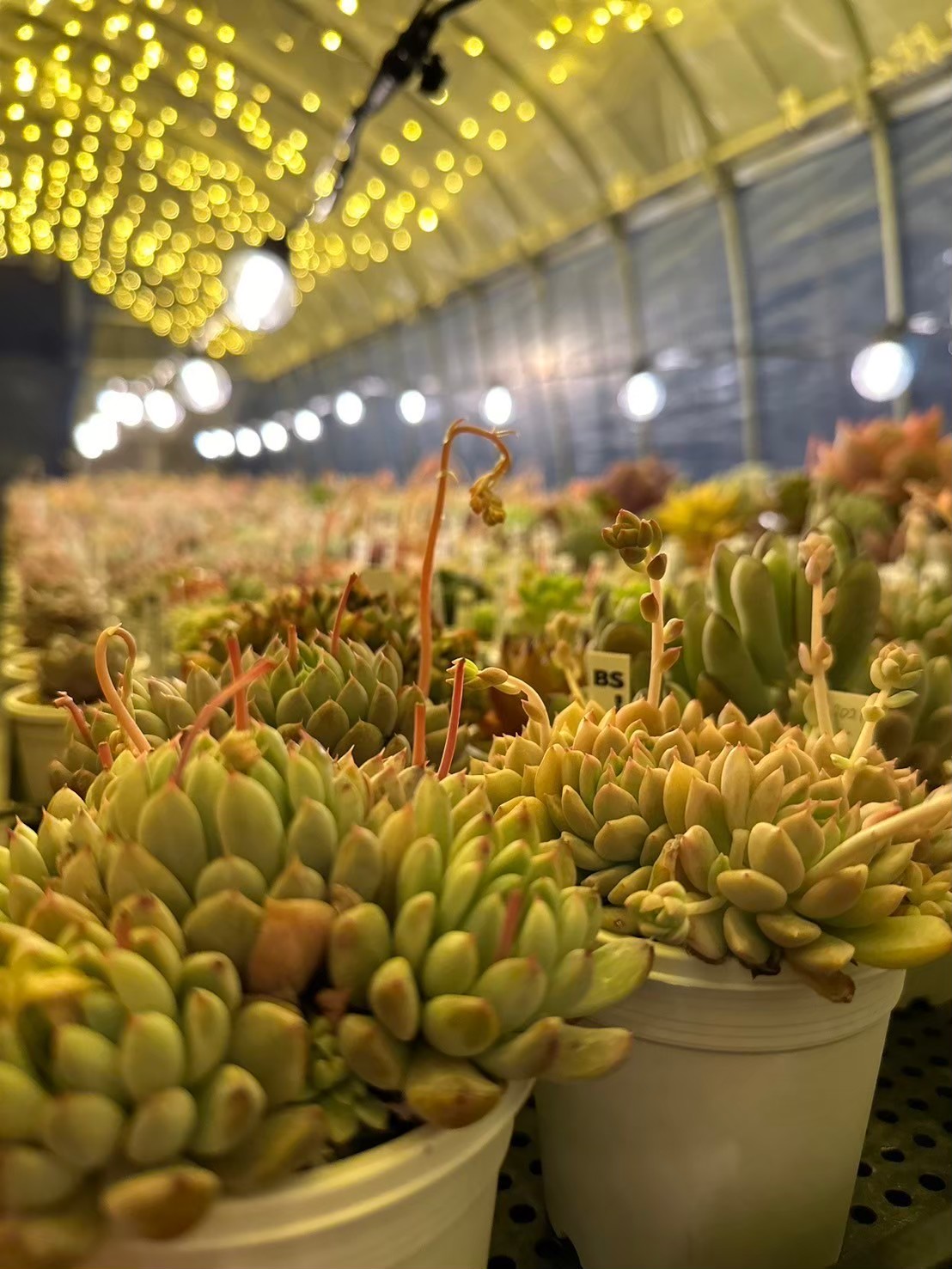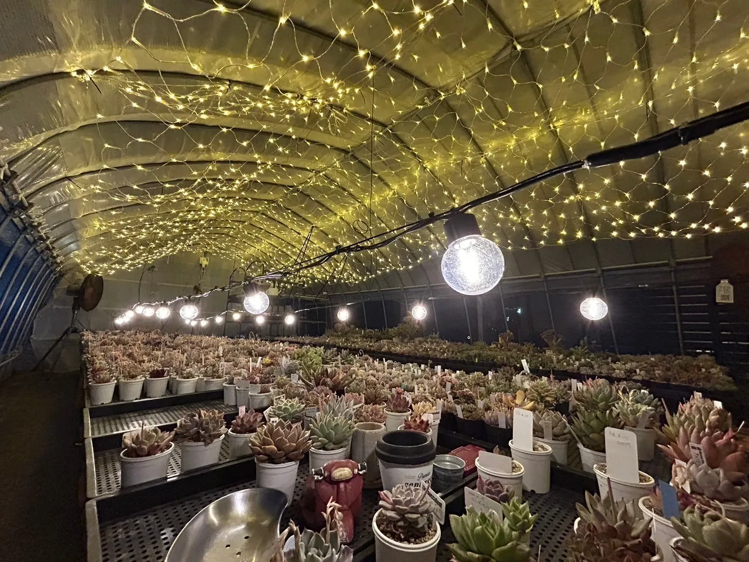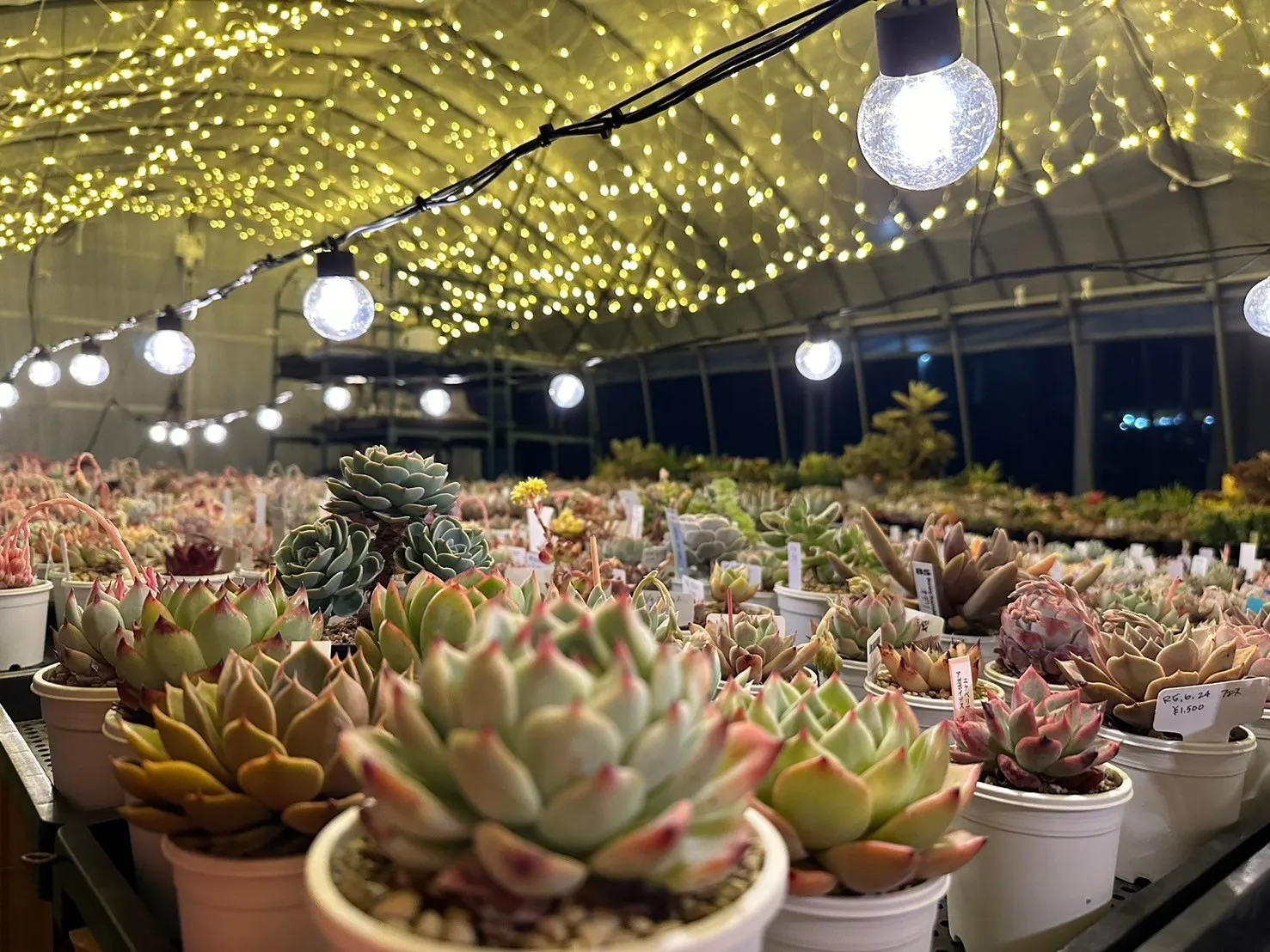 陽の光のもとで美しく可愛い多肉植物を、イルミネーションの光との融合で