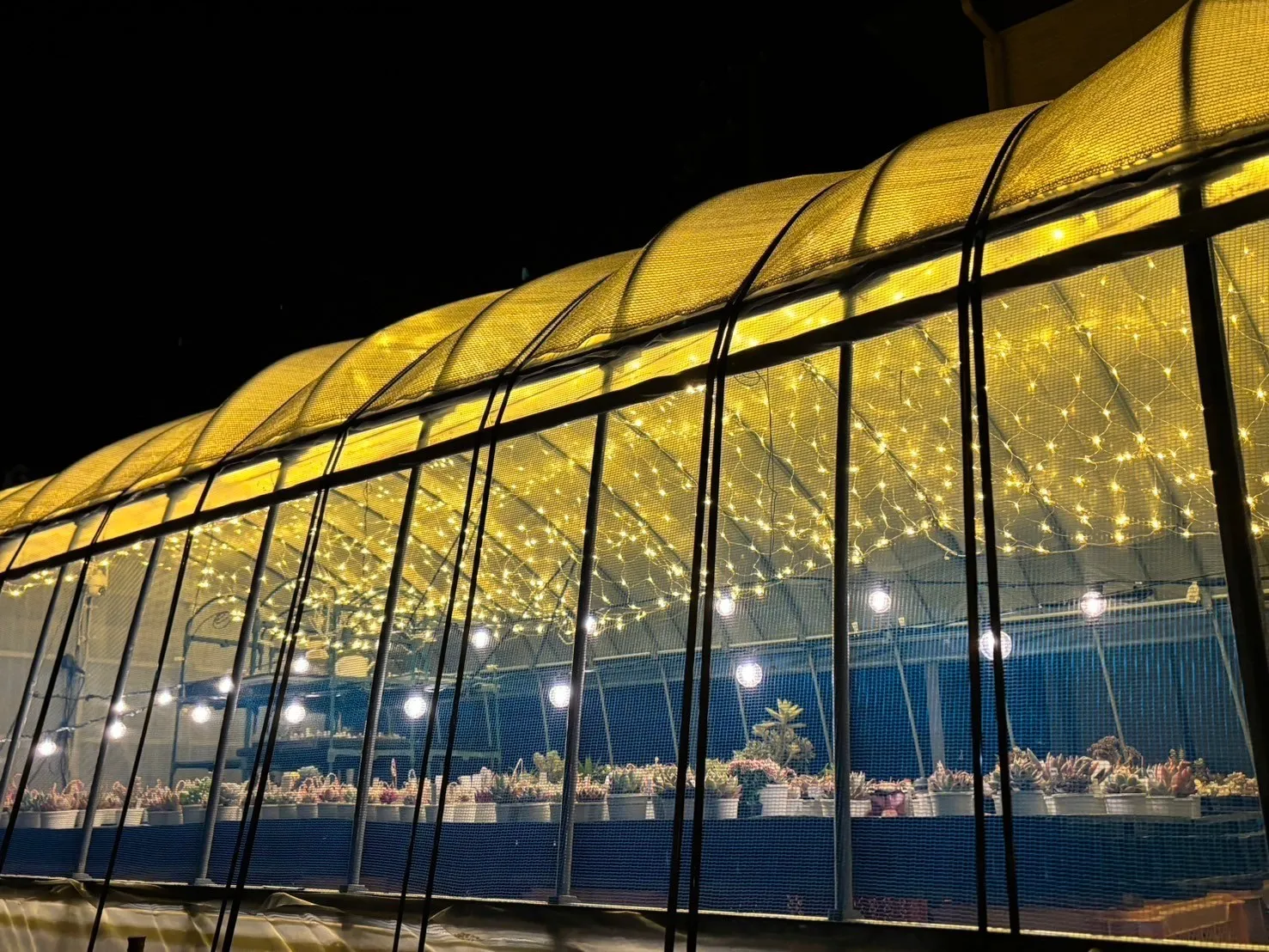 - 視認性アップ LEDイルミネーションがビニールハウスを彩ることで、夜でも目を引くショールームになります。